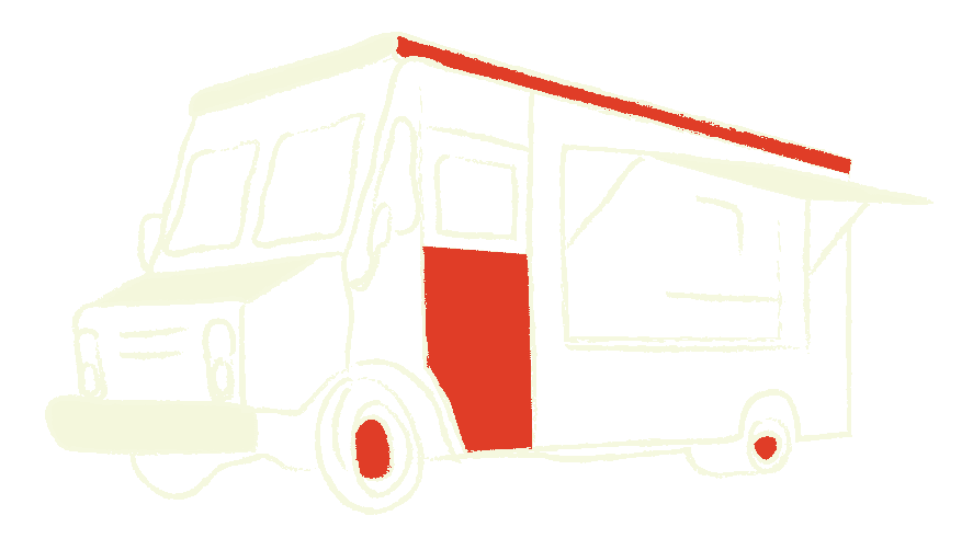 Our little Jimi, a powerful GMC-based animal with its own kitchen and bar. We serve here the perfect fries, burgers and beer!