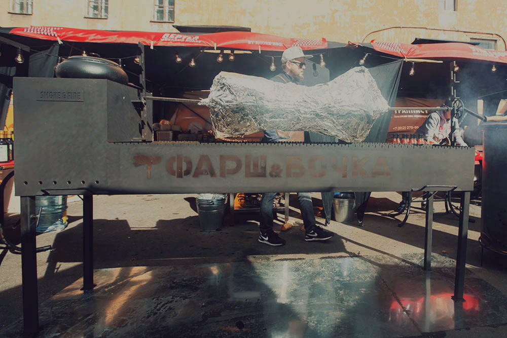 In our restaurants we use stationary smokers, but for the open air we have designed and constructed our own BBQ equipment. We bring to the festival our entire range of grills and smokers designed by our head chef Alexey Kanevsky, and we also build a huge BBQ street together with our smoke and fire partners.