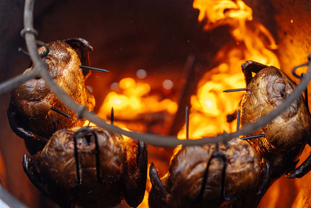 A barbecue technique from Burma - the ducks are hooked and smoked over an open fire and after four hours the most delicious poultry from Smoke BBQ is ready.
